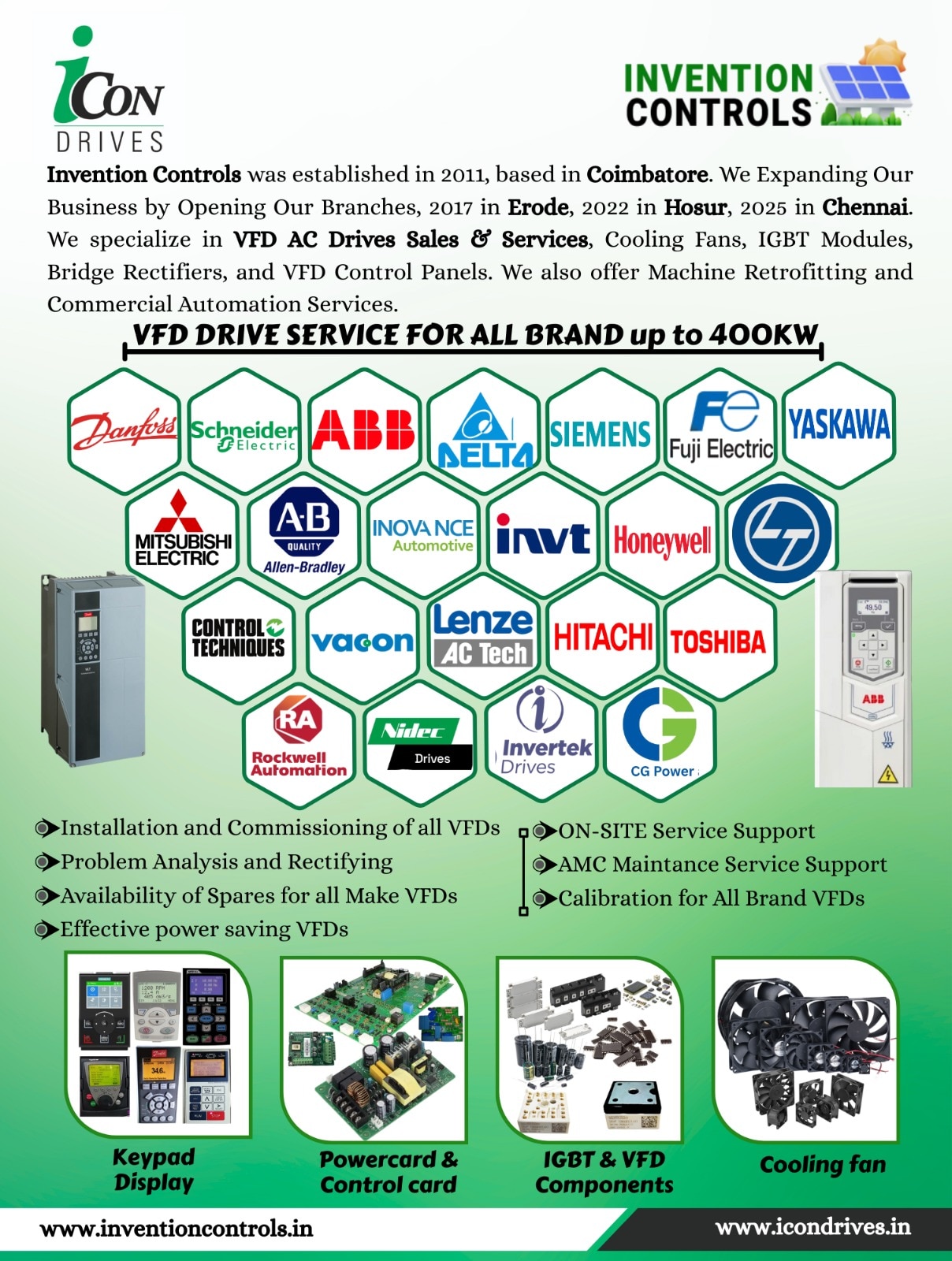 Invention Controls is the sole proprietorship based company that was established in the year 2009 at Tamil Nadu, India. Our company has achieved widespread recognition for offering VFD AC Drive, Cooling Fan, IGBT Modules And Bridg...Read More